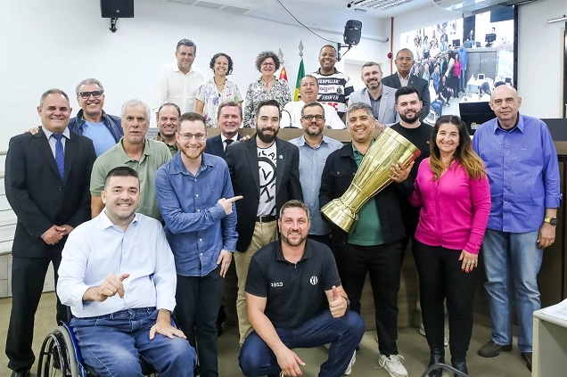 A 58ª Reunião Ordinária da Câmara Municipal de Piracicaba, realizada na última segunda-feira (13), foi marcada por um momento de festa e emoção. O presidente do Esporte Clube XV de Novembro, Matheus Bonassi, esteve no plenário para apresentar aos vereadores a taça da Copa Paulista de 2025, conquistada no último sábado (11), após a vitória do time alvinegro sobre o Primavera por 2 a 0, no Estádio Barão da Serra Negra.