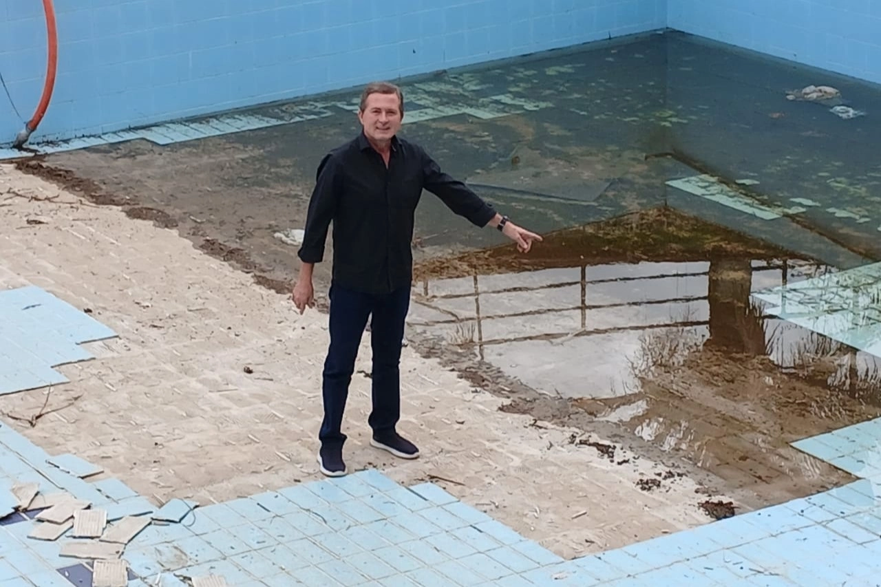 Durante a inspeção, Trevisan Jr. verificou que as piscinas estão sem água e completamente inutilizadas, impedindo o acesso da população e restringindo atividades esportivas e recreativas, e identificou lodo acumulado, filtros e tubulações expostas e revestimentos do piso soltos, representando risco físico aos usuários.