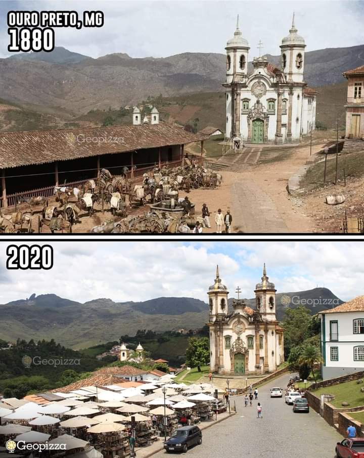 A transformação de Ouro Preto em 140 anos, com vista para a Igreja de São Francisco de Assis. Por Geopizza