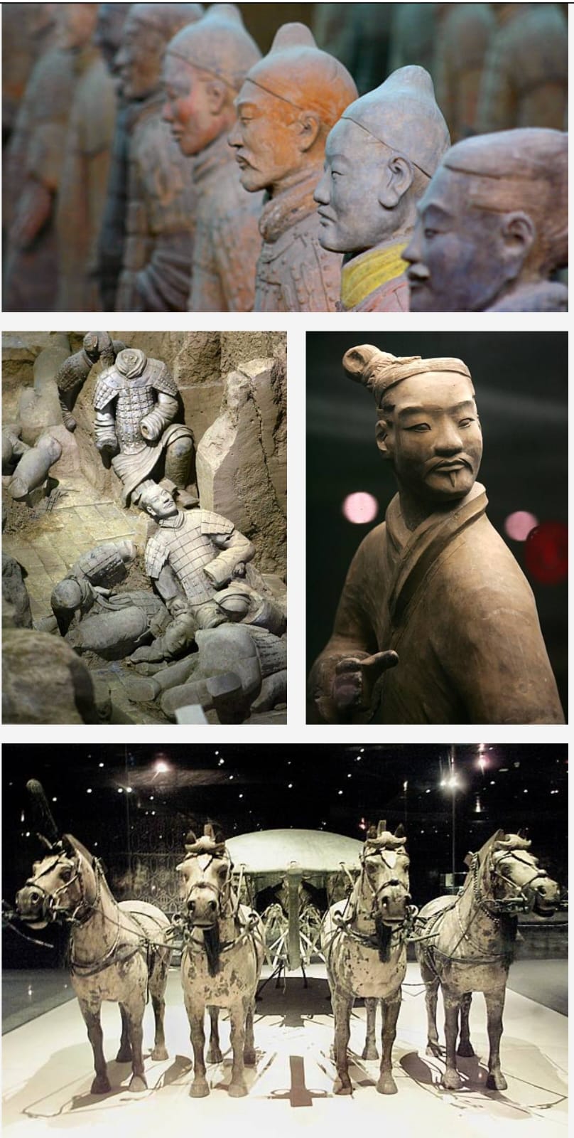 O delírio de grandeza de Qin Shihuangdi fez com que ele começasse a construir seu mausoléu logo que entronado, no ano 246 AC, com apenas 13 anos de idade. Como parte da crença, ele aspirava levar com ele, no momento de deixar a vida terrena, tudo que fosse importante. Para ele, o principal era seu exército. Quando morreu em 210 AC, com 49 anos, toda uma hoste de guerreiros em terracota, em tamanho original, acompanhou-o para a seguinte vida. Mais de 700 mil pessoas trabalharam para montar sua majestosa tumba.