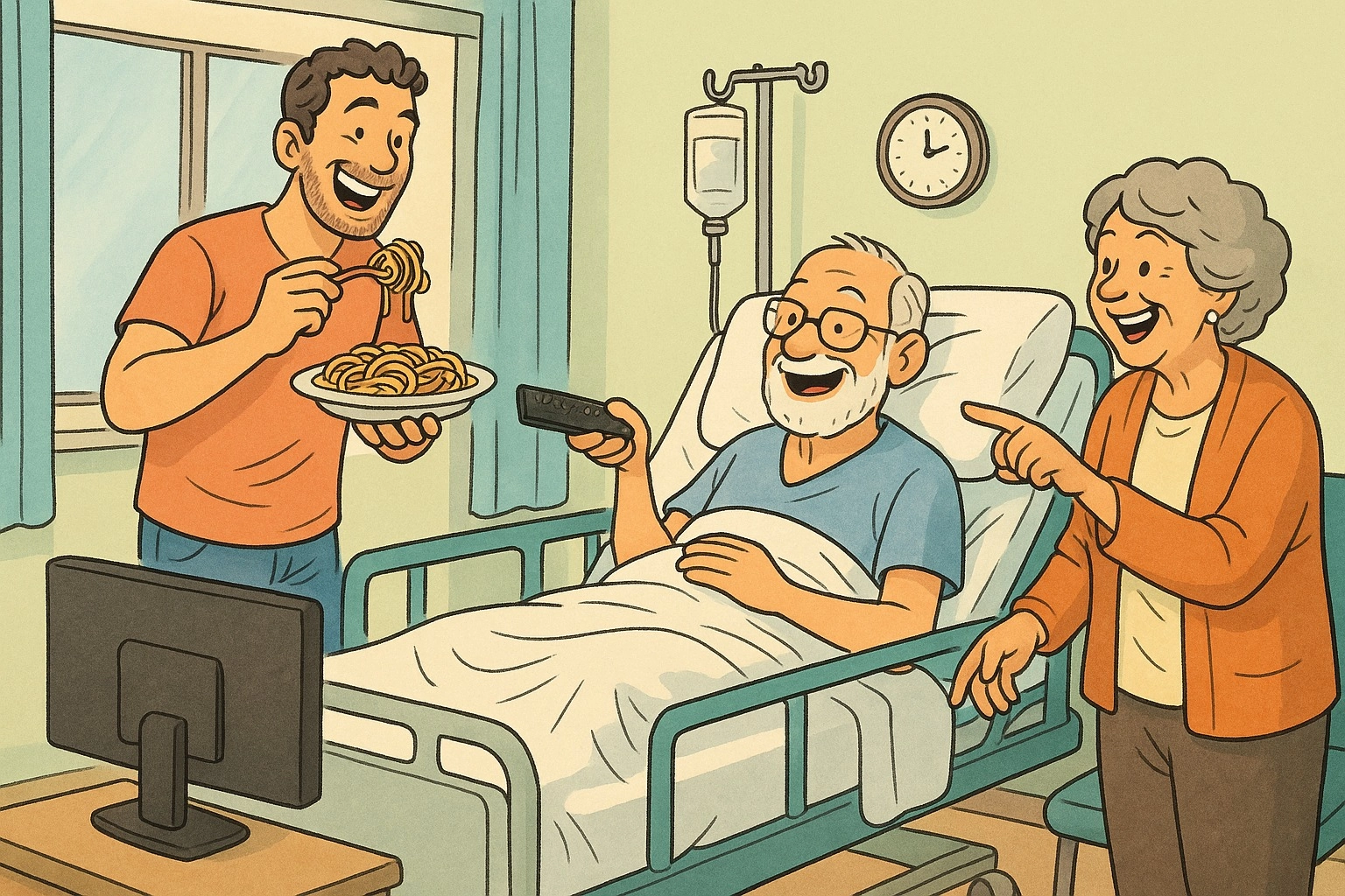 Foi um bálsamo de alegria para aquela família que estava vivenciando o luto em prestações. Passaram uma tarde agradável, parecia almoço de domingo, daqueles que reúnem a parentada e não tem nem espaço na mesa pra todos ao mesmo tempo. É um tal de gente com prato no colo espalhado pela casa ou sentado no sofá assistindo programa de auditório na televisão. Cada um falando mais alto que o outro para conseguir ser ouvido ao contar sua história enquanto a tia mais velha sobe o volume da TV porque não consegue ouvir o apresentador. Uma confusão danada de boa. No dia seguinte a equipe médica faz mais um chamado.