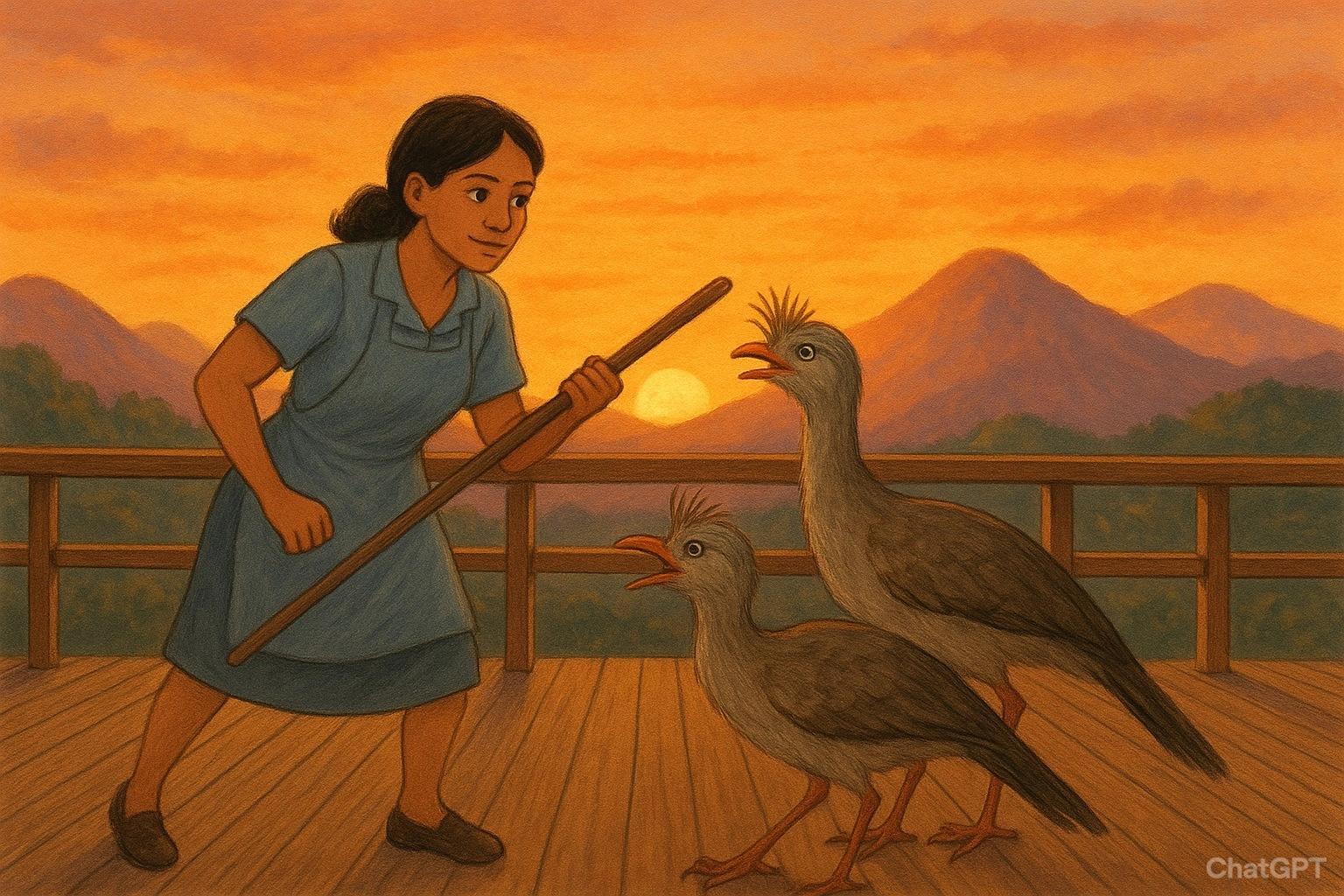 Um lugar lindo lindo de se ver. E lá foi ela com seus baldes e vassouras cumprir com sua tarefa. Tarefa dada era tarefa cumprida. Ao chegar perto de um dos principais observatórios daquele ponto da montanha, Marinalva deu de frente com o par de siriemas (que eram