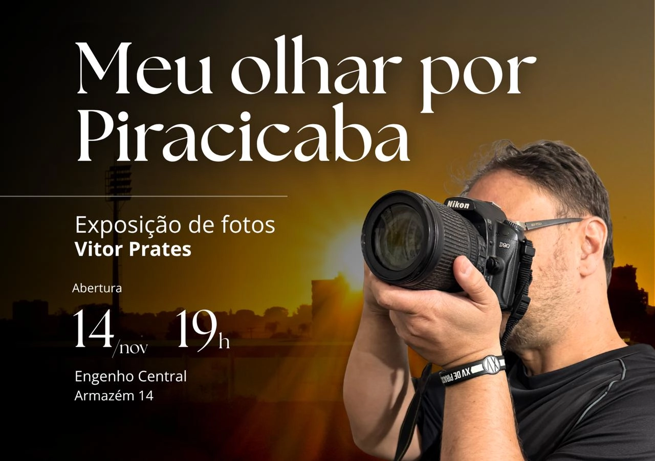 O fotógrafo e radialista piracicabano Vitor Prates está lançando a sua primeira exposição solo de fotografias “Meu Olhar por Piracicaba”, no Armazém 14 do Engenho Central. São mais de 80 registros fotográficos que retratam diferentes ângulos e paisagens da cidade, como o próprio Engenho Central, o Rio Piracicaba, o bairro Monte Alegre, a Esalq, entre outros locais emblemáticos. A curadoria é da amiga e jornalista Adriana Passari.