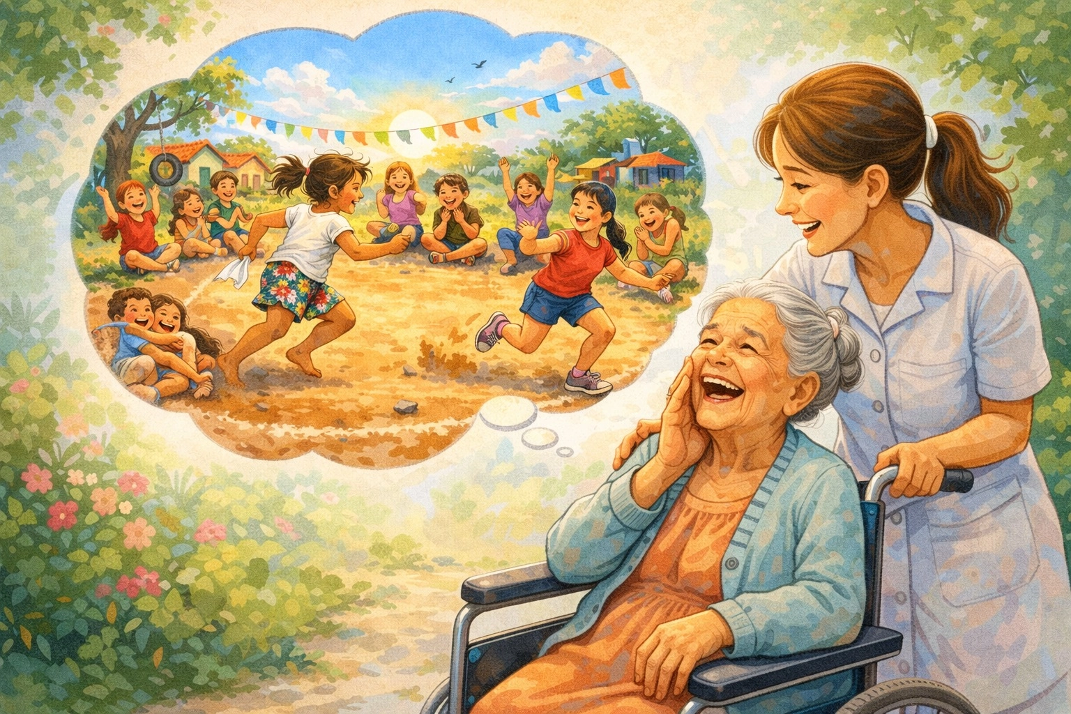 Por sorte, ninguém se feriu gravemente, somente alguns arranhões e hematomas que as crianças já estão acostumadas. Em vez de chorar elas riram tanto, mas tanto, que depois do susto inicial estavam todos contagiados gargalhando. Assim como ela, quando se deu conta estava gargalhando alto sem ter como explicar. Eram as suas doces memórias de um tempo que não voltava mais. Como era mesmo o nome daquela amiga? Logo, ao seu lado apareceu a enfermeira perguntando: por que está tão alegre hoje Dona Amália? Que bom vê-la rindo assim. Conte-me o que é tão engraçado?