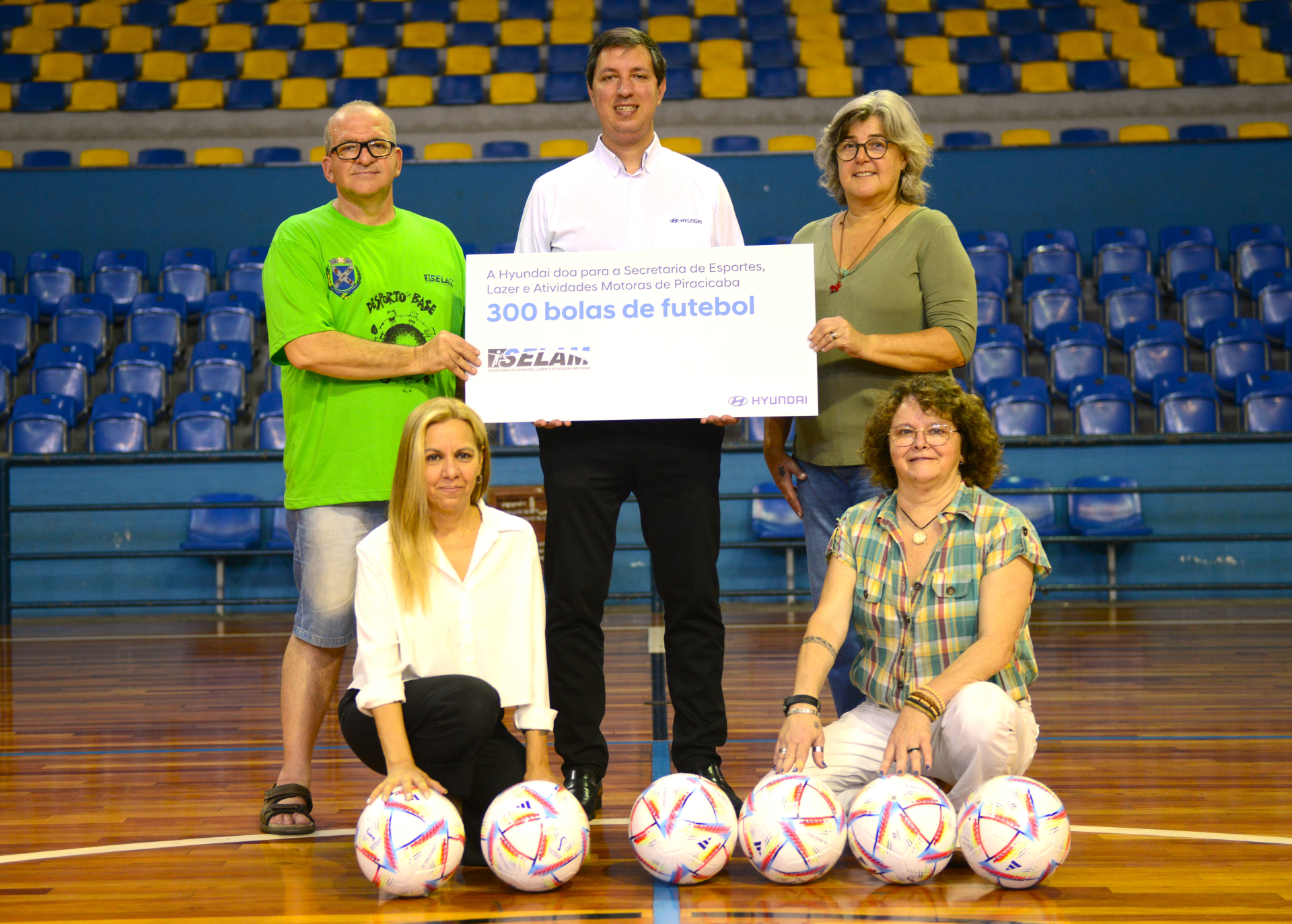 A Hyundai Motor Brasil realizou na última terça-feira, dia 26/9, a entrega de 300 bolas de futebol para a Prefeitura de Piracicaba, por meio da Selam (Secretaria de Esportes, Lazer e Atividades Motoras), que serão utilizadas pelos núcleos do PDB (Programa Desporto de Base) e outras atividades. A cerimônia oficial de entrega aconteceu no Ginásio Municipal de Esportes Waldemar Blatkauskas, com a presença de representantes da Hyundai e da Selam.