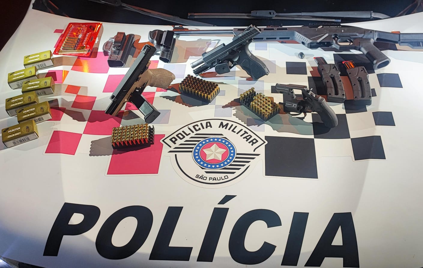 Ao ser questionada sobre a presença de mais armas, T.F.B. confirmou e permitiu que a polícia adentrasse sua residência. Durante a busca, foram localizadas mais três armas de fogo, além de diversas munições. O casal foi conduzido à delegacia, onde M.A.S. permaneceu preso à disposição da Justiça. T.F.B. foi autuada por lesão corporal e ameaça, sendo liberada em seguida. Todo o armamento foi apreendido.