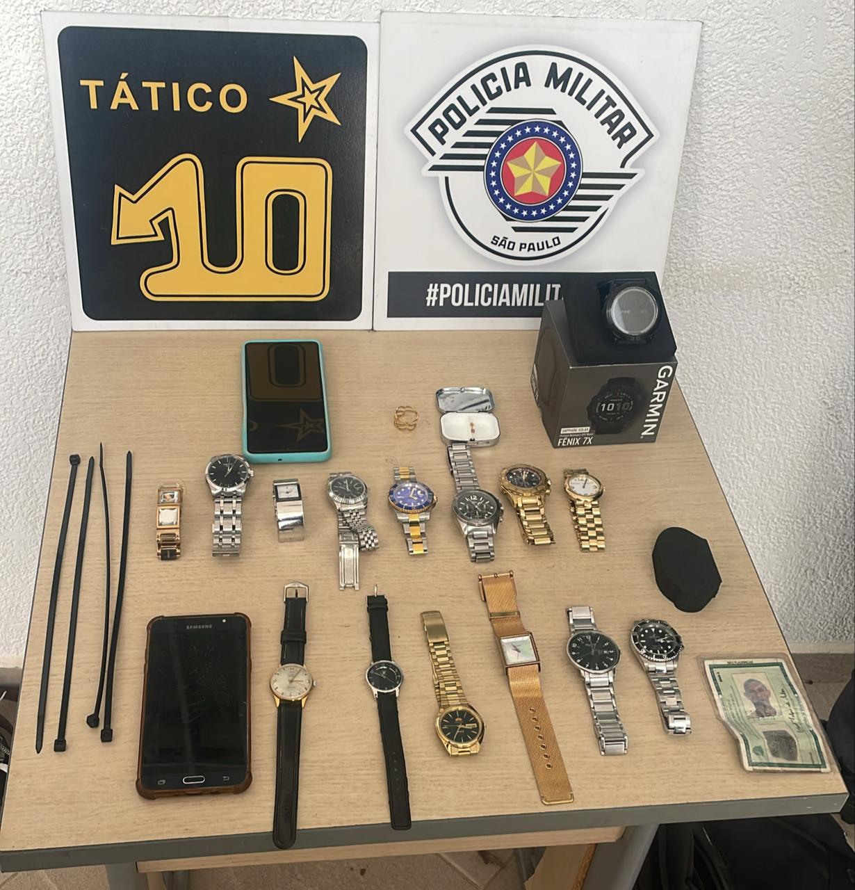 criminosos levando relógios, joias e várias armas, sendo a vítima um CAC
